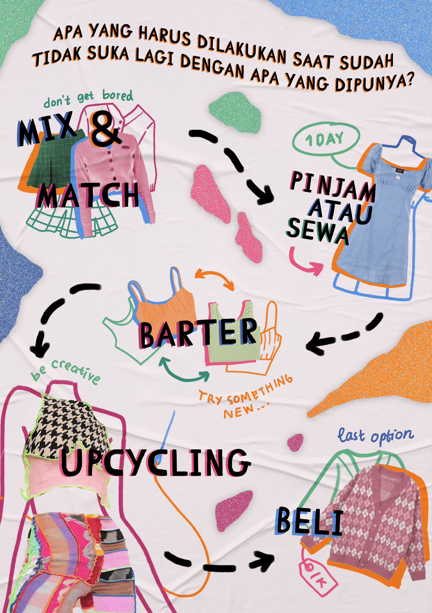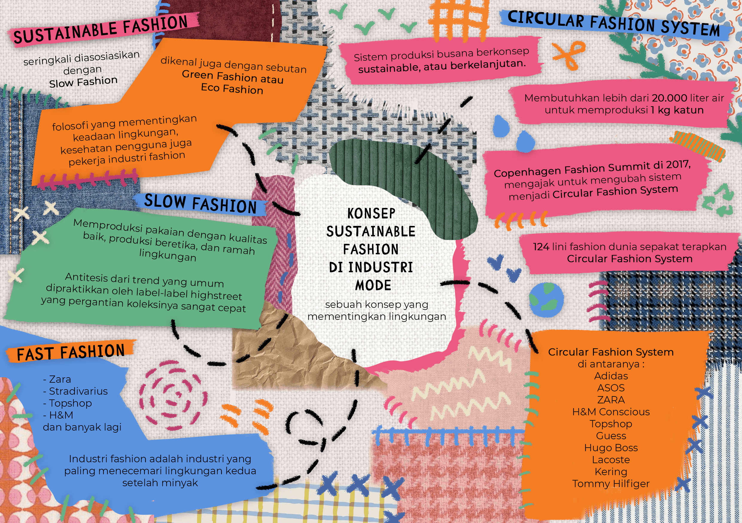this is one of the poster that explain the concept of sustainable fashion in the fashion industry such as sustainable fashion, circular fashion system, slow fashion, and fast fashion.