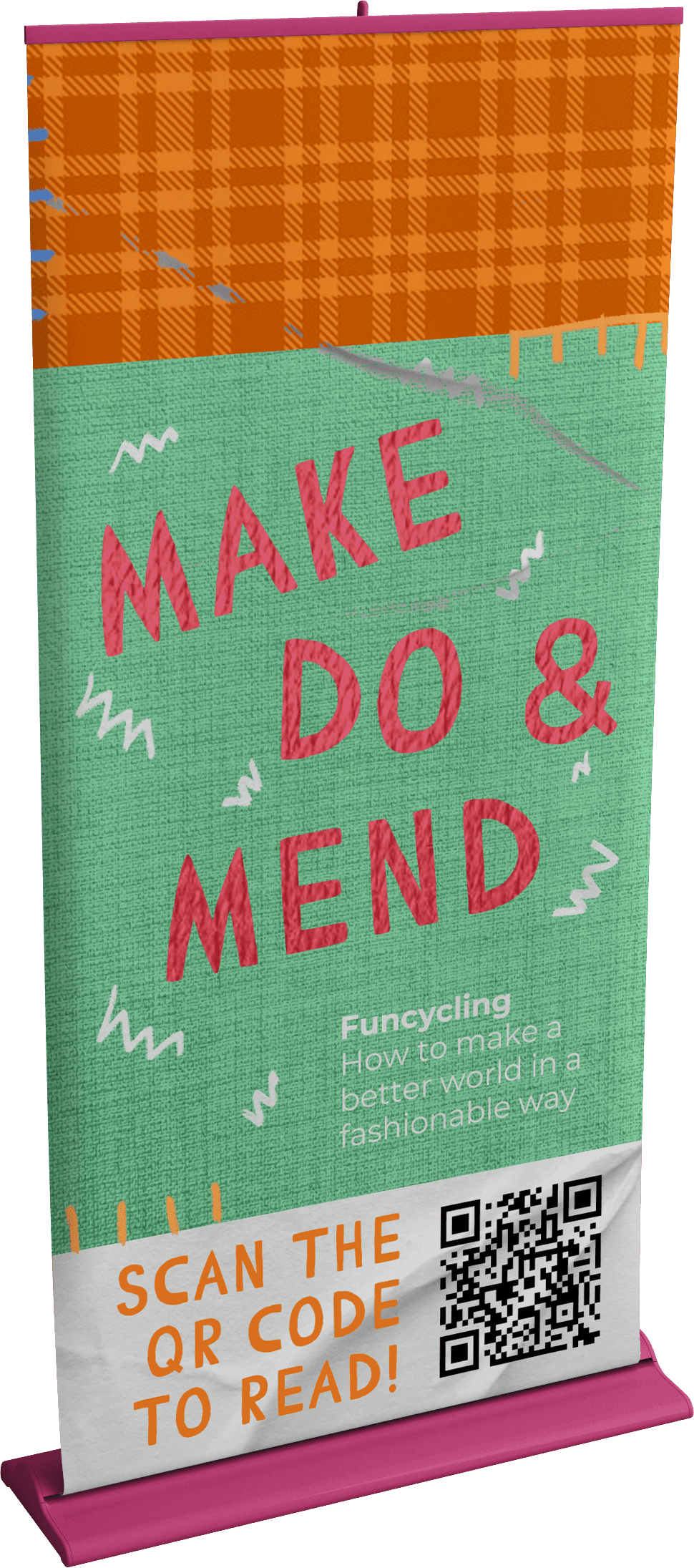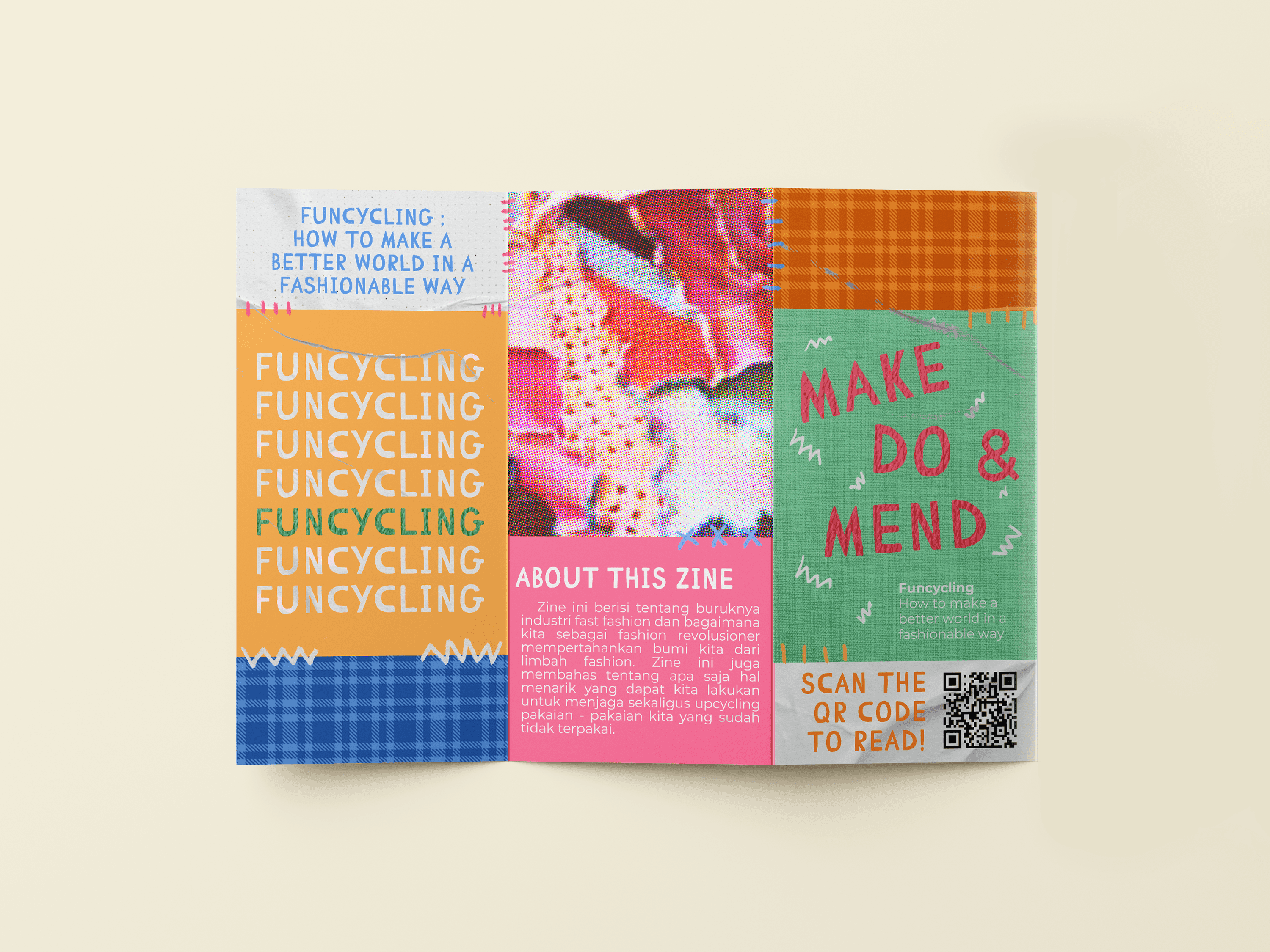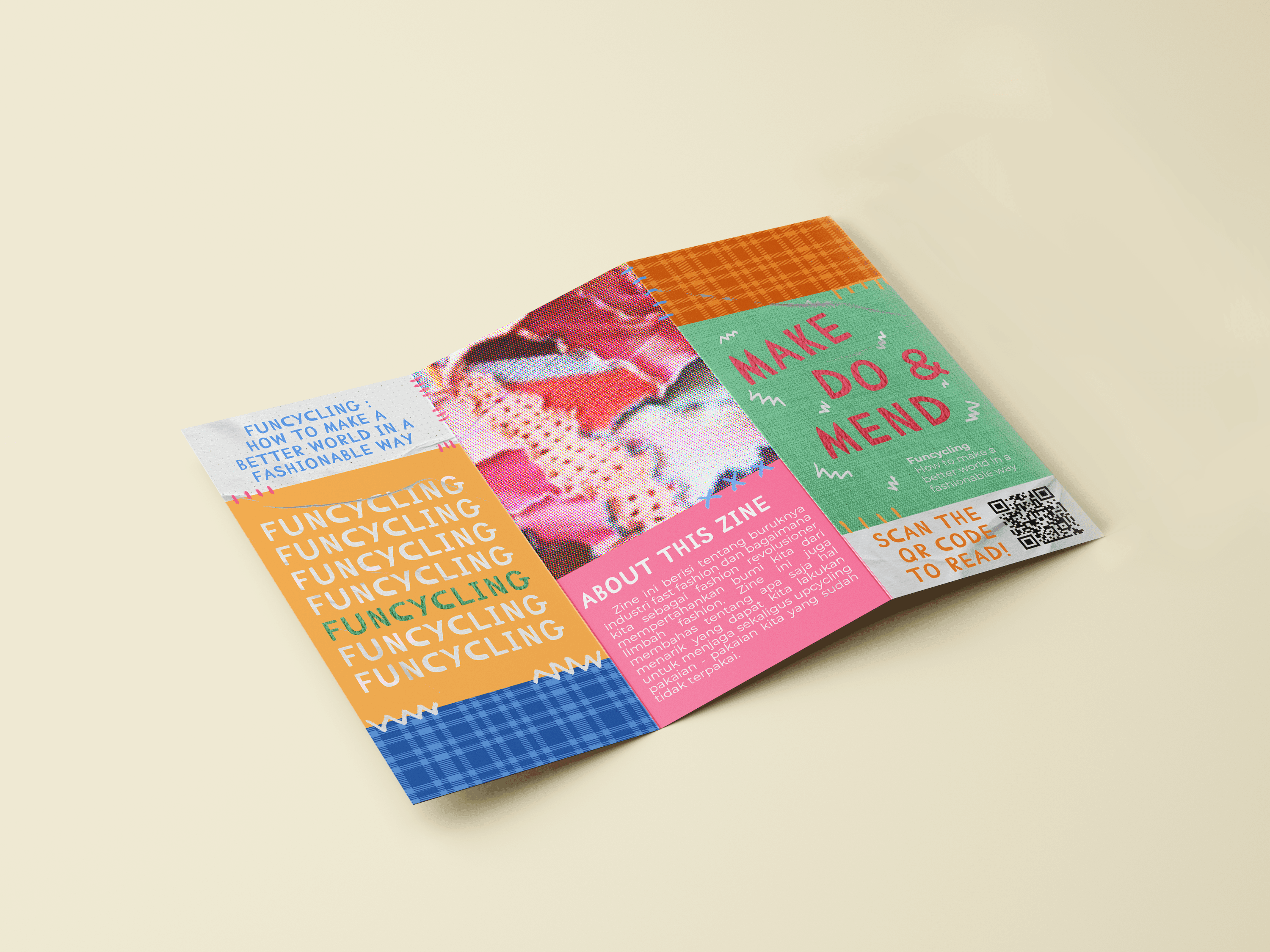 In addition to the zine, the campaign features a brochure that provides a summary of the campaign and a banner with the slogan "Make Do & Mend," to encourage people to do upcycling and reusing fashion items.