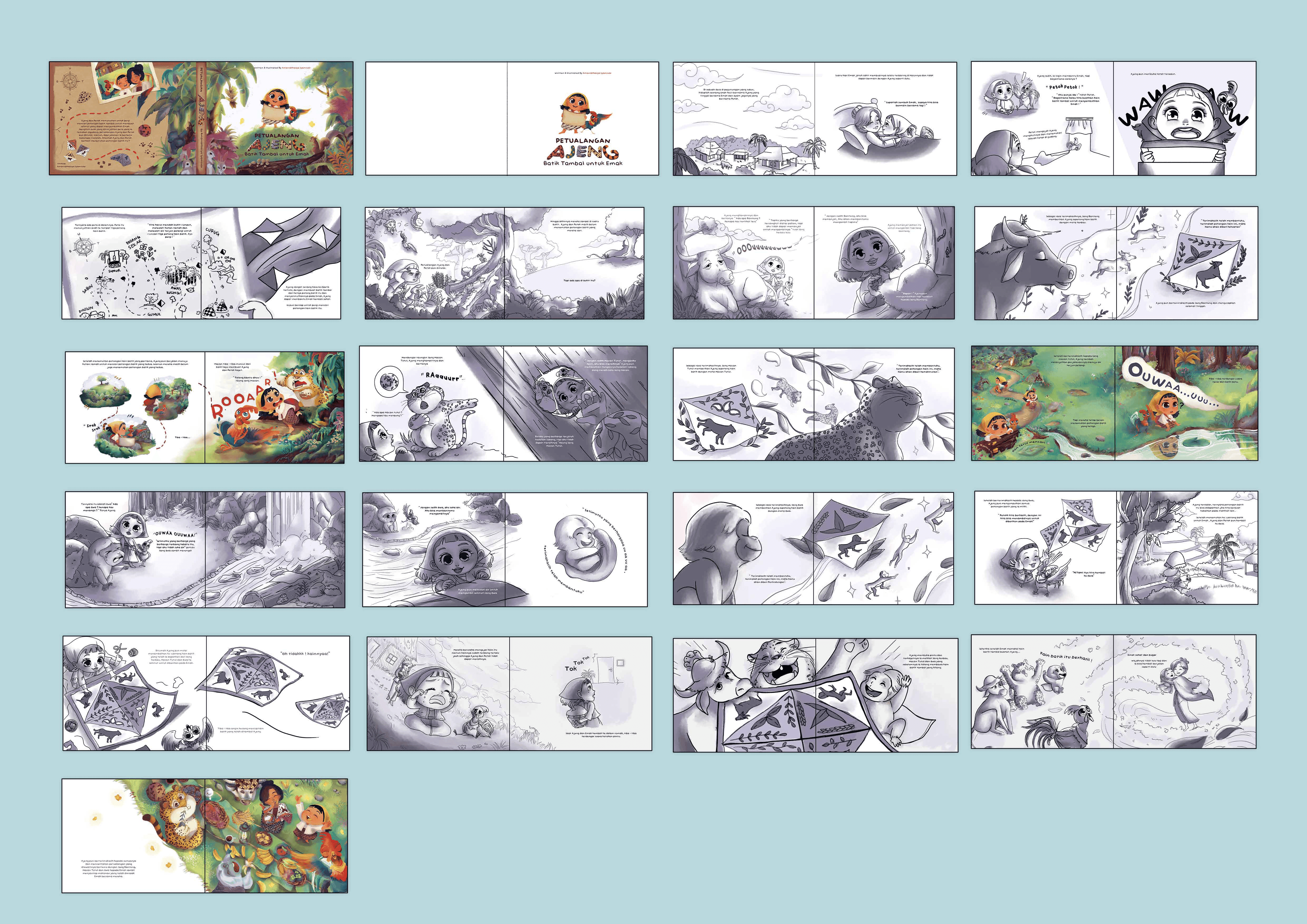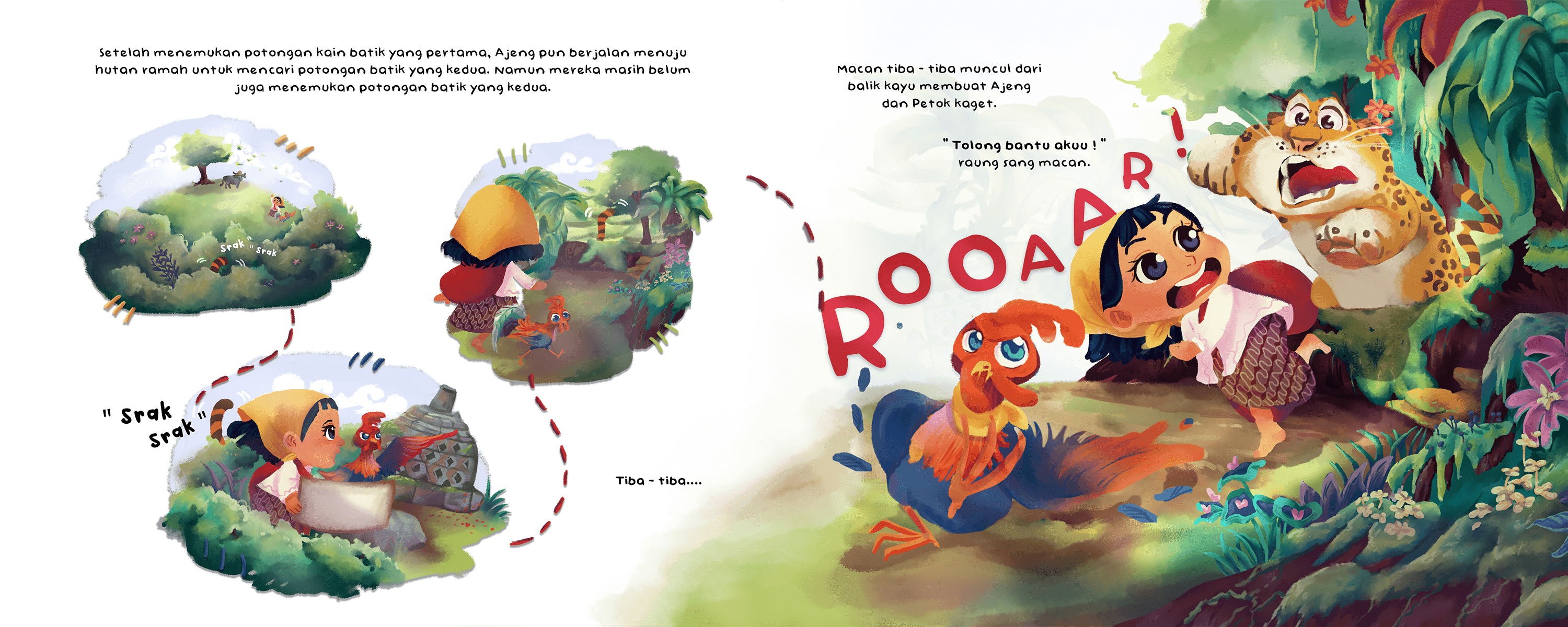 This book created for the children’s book illustration exhibition "Imajinesia 3". This story introduces young readers to the rich culture of Indonesia’s traditional fabrics, particularly batik tambal. Through an engaging and heartwarming adventure, children will not only learn about the beauty of batik, but also the importance of kindness, frinedship and helping others.