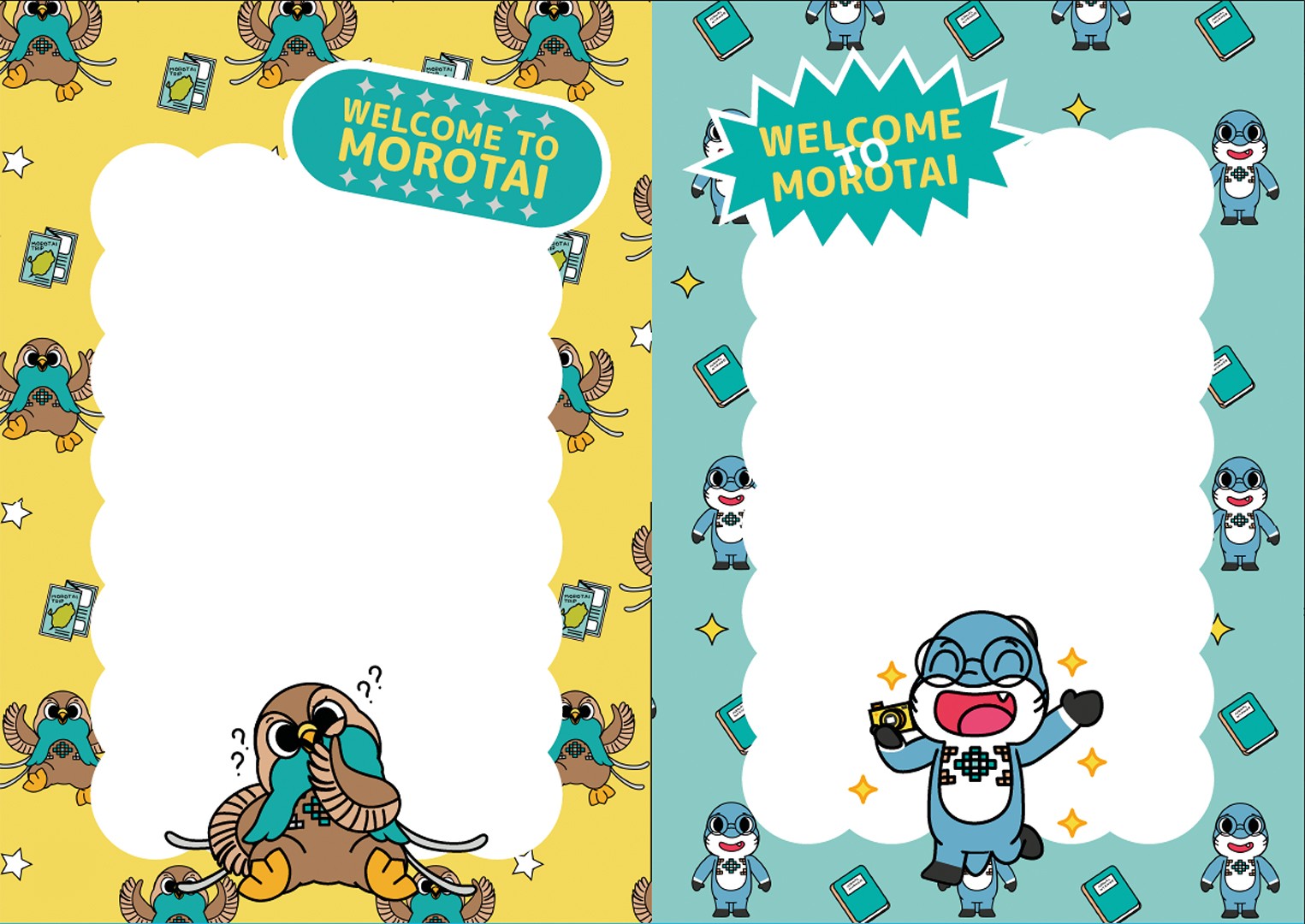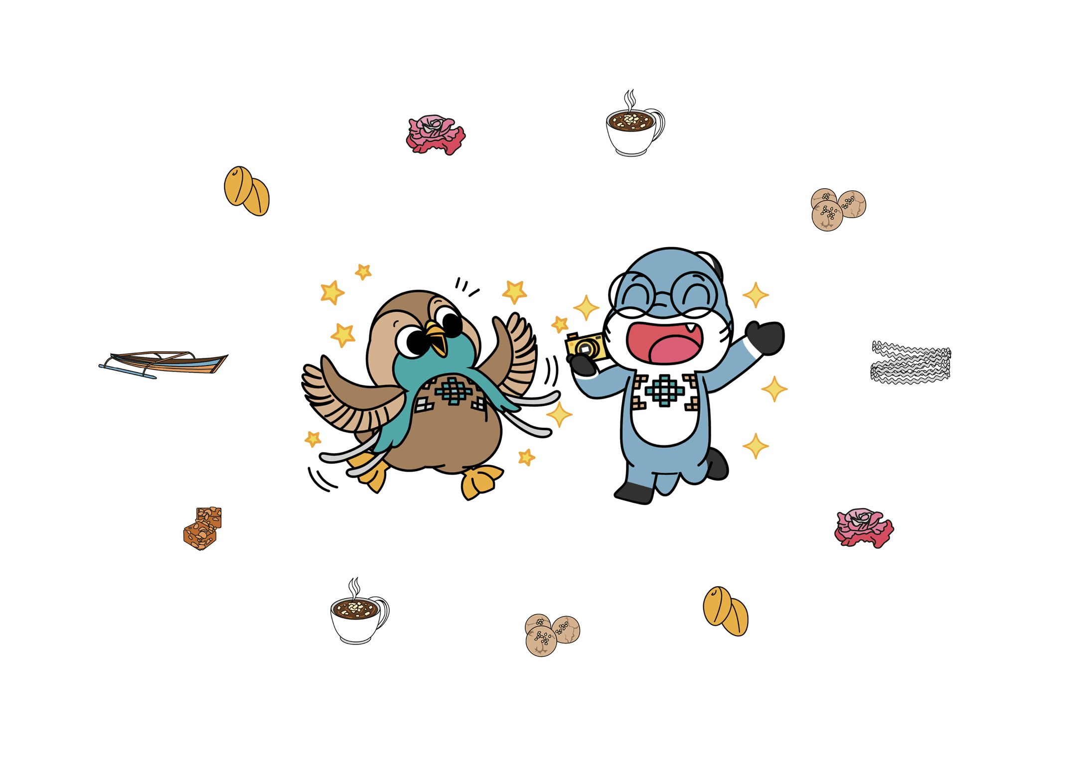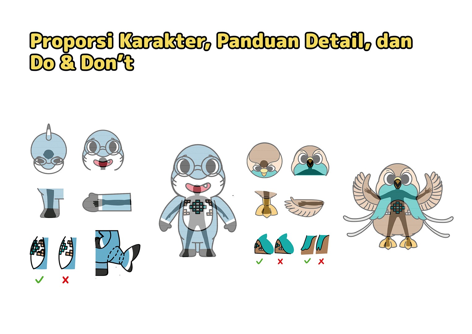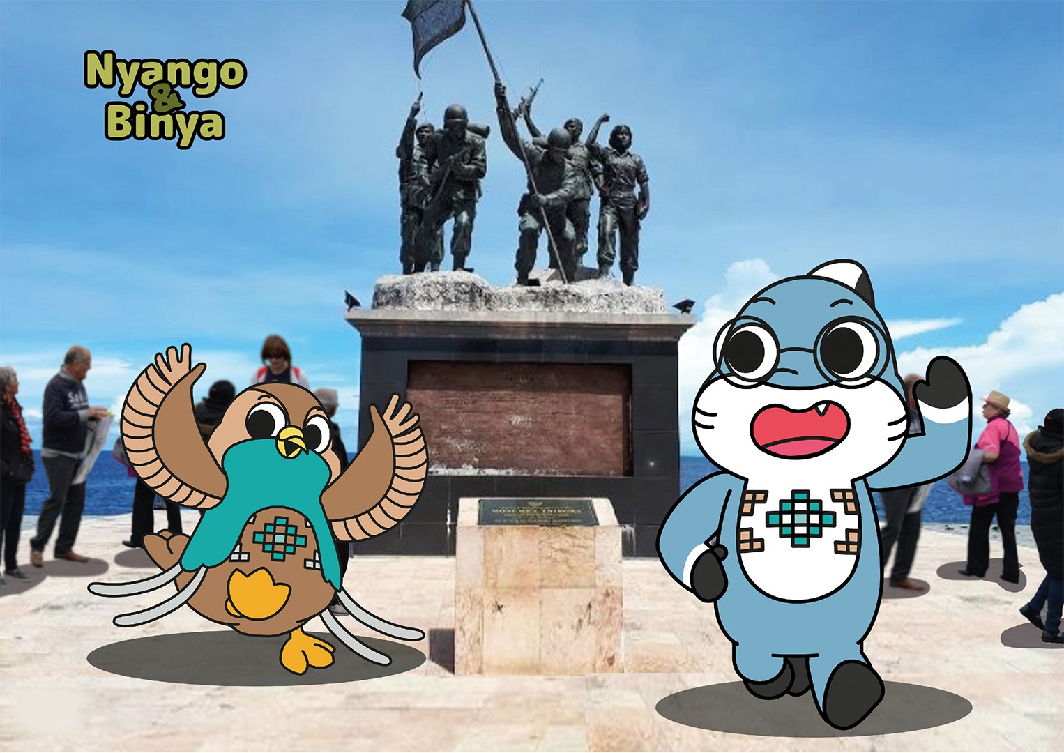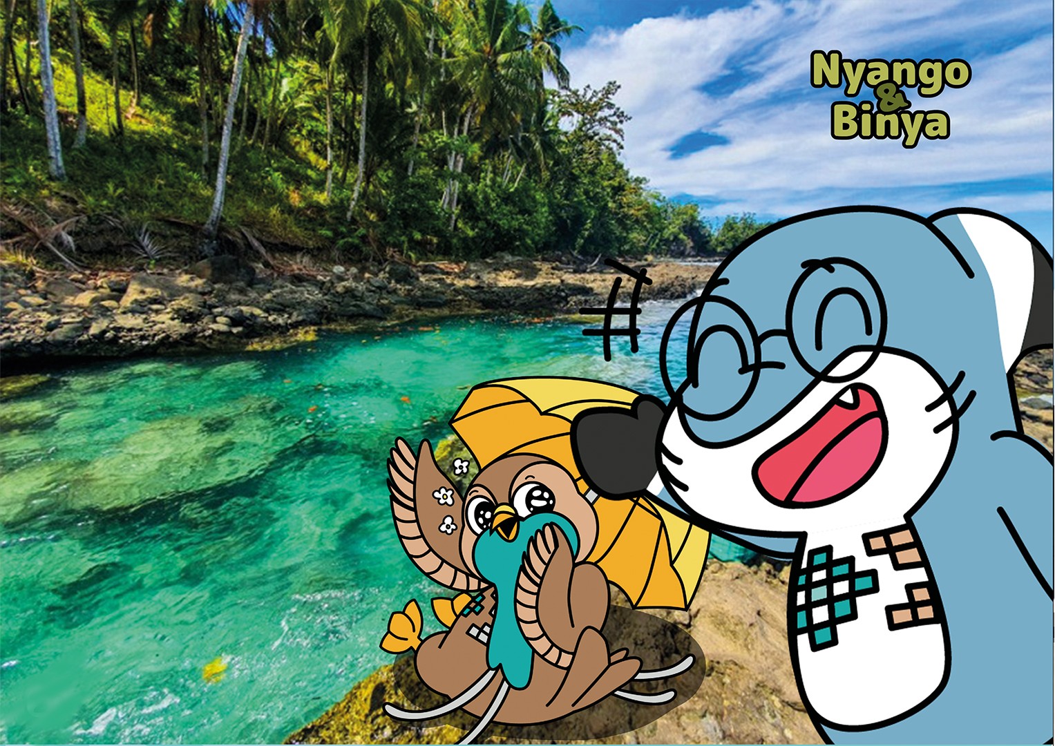 Nyango and Binya are the mascots designed to represent Morotai Island, North Maluku, Indonesia. Drawing inspiration from two of the island's iconic tourist attractions, the duo brings the spirit of Dodola Islands to life. Nyango, the Historian Gurango, embodies the rich history and cultural heritage of Big Dodola Island, while Binya, the cheerful angel bird, reflects the lively and welcoming nature of Small Dodola Island. Together, they invite visitors to explore the beauty and stories of Morotai, creating an engaging and memorable experience for all.