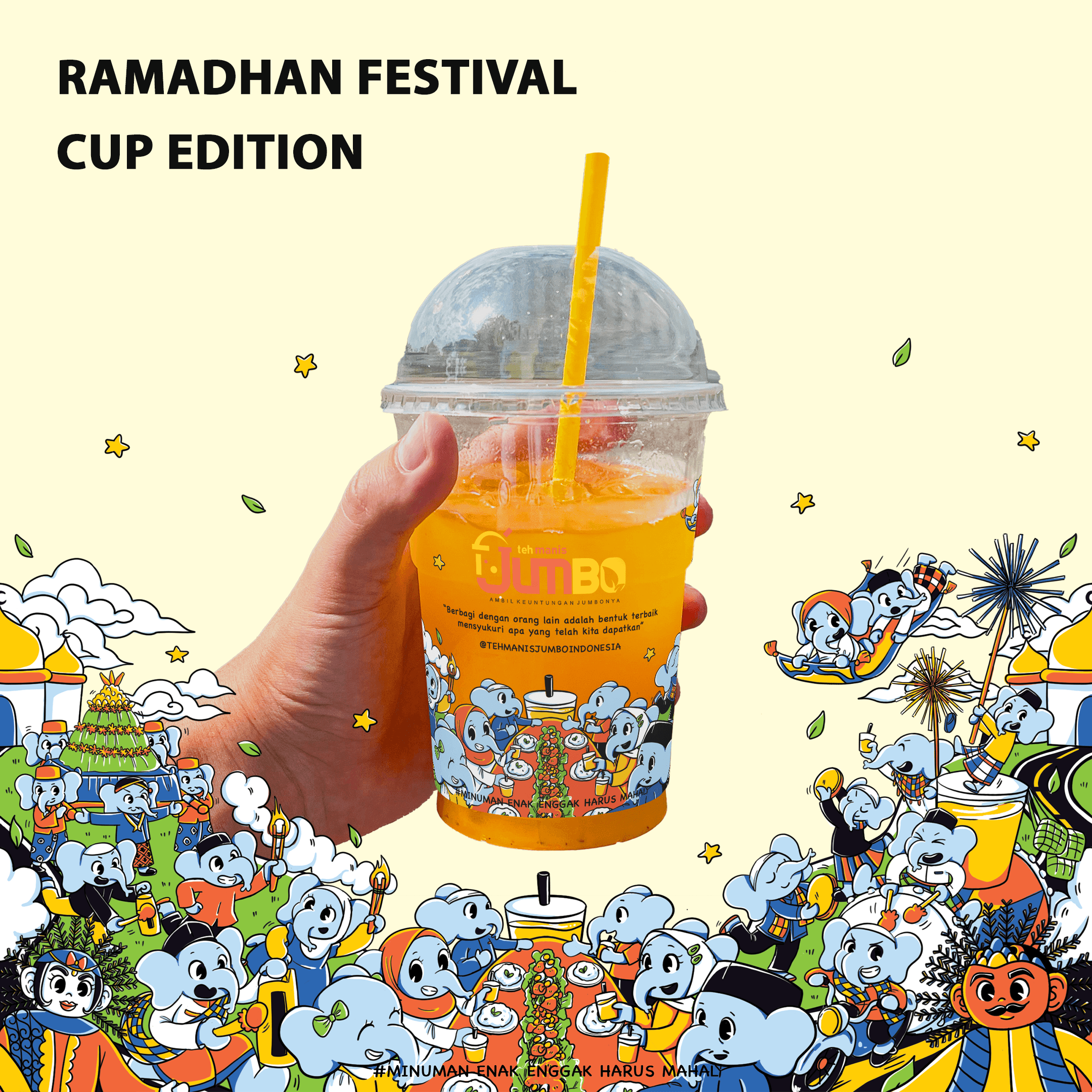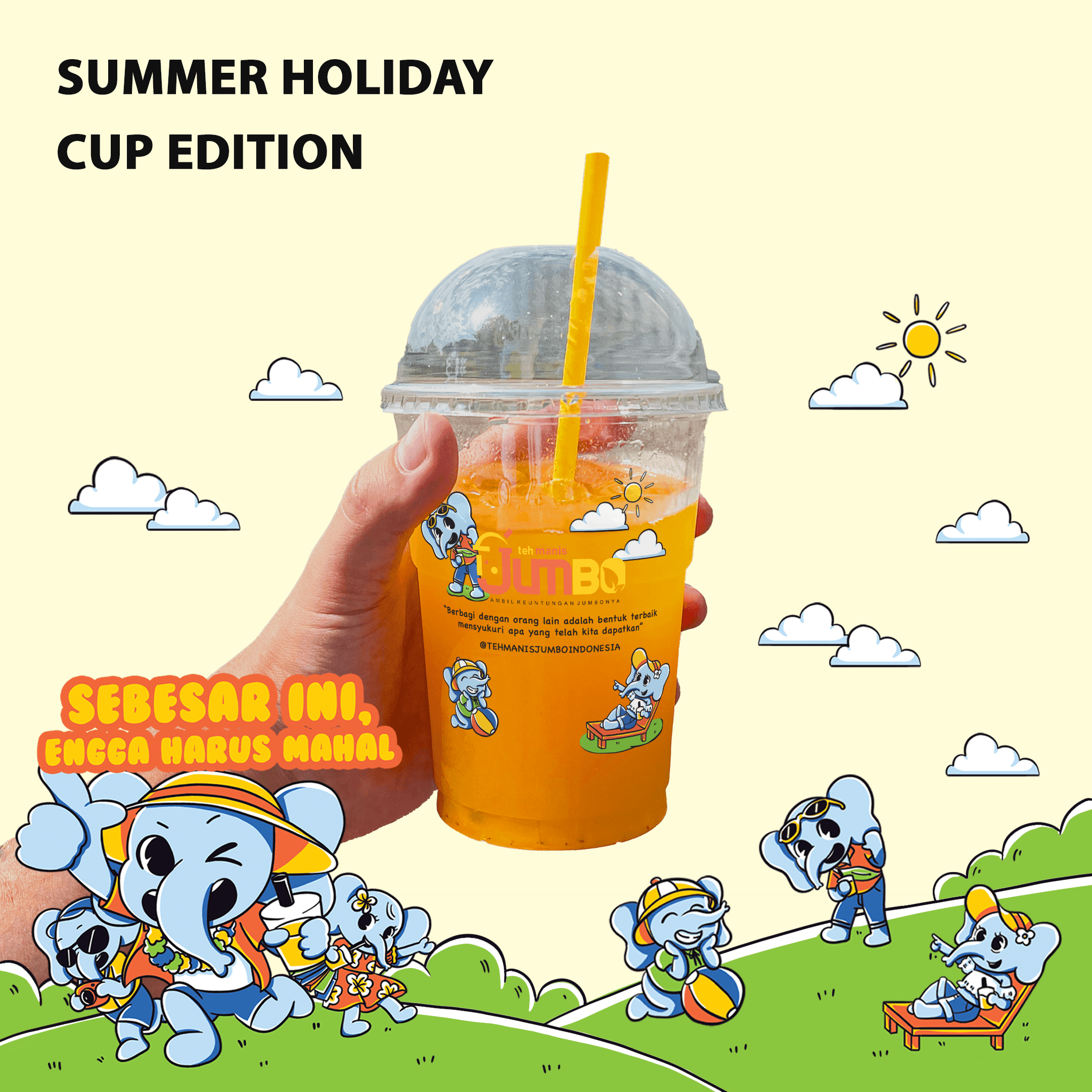 Dia berharap dengan Es Teh Jumbo buatannya, ia dapat memberikan kesegaran, kesenangan dan pengalaman rasa tidak terlupakan kepada orang lain.