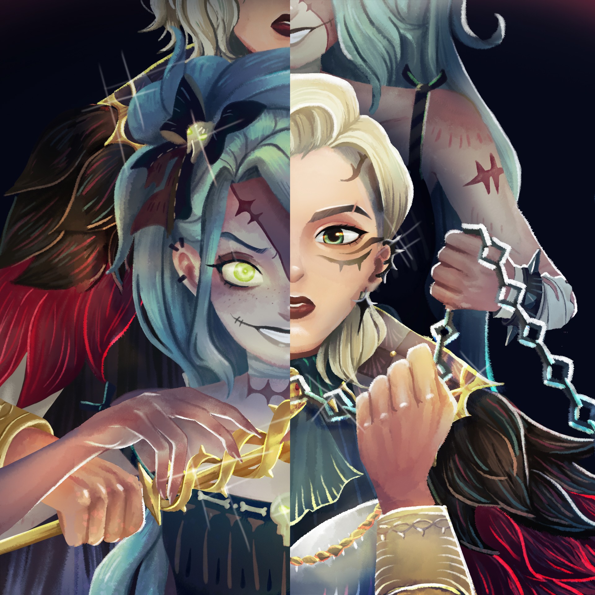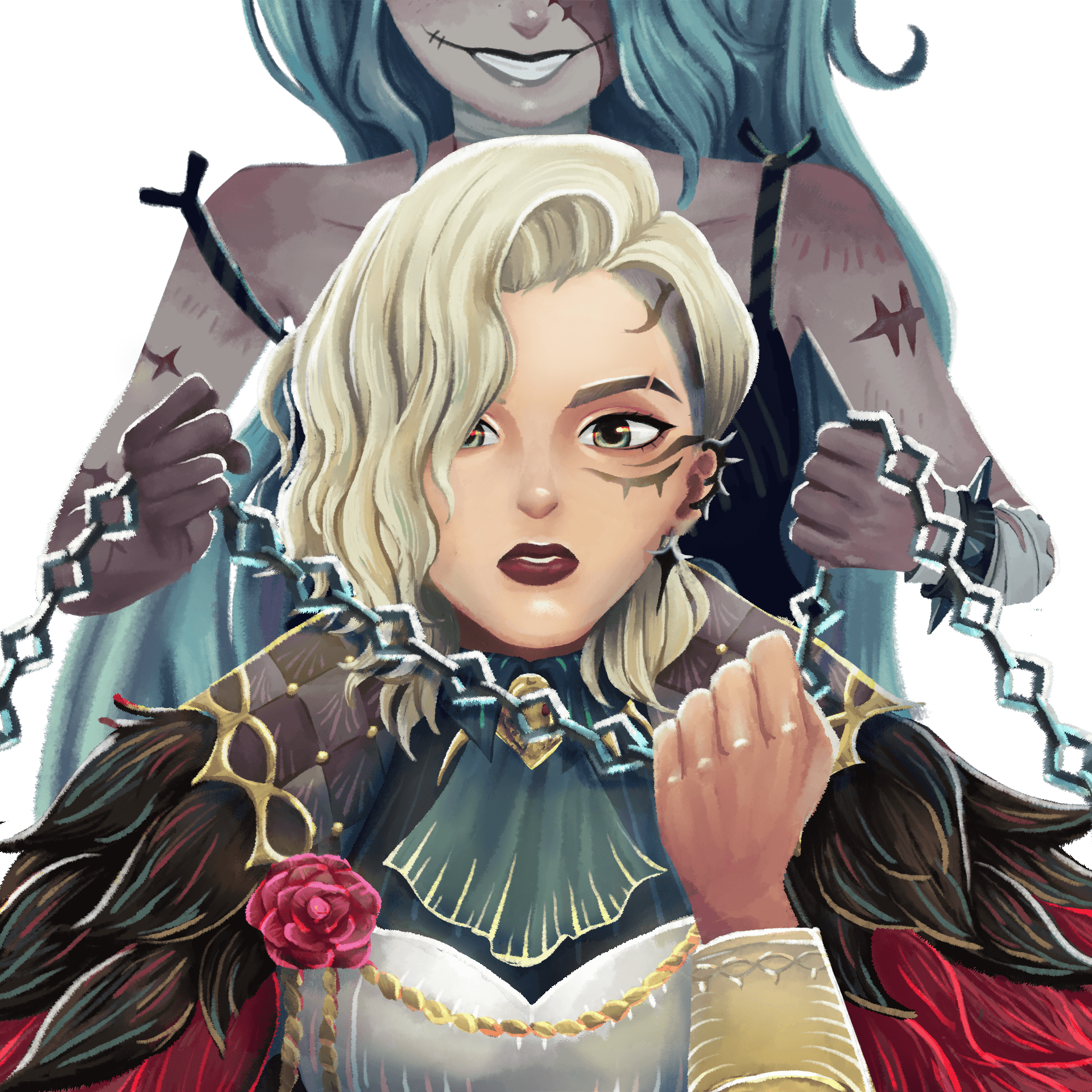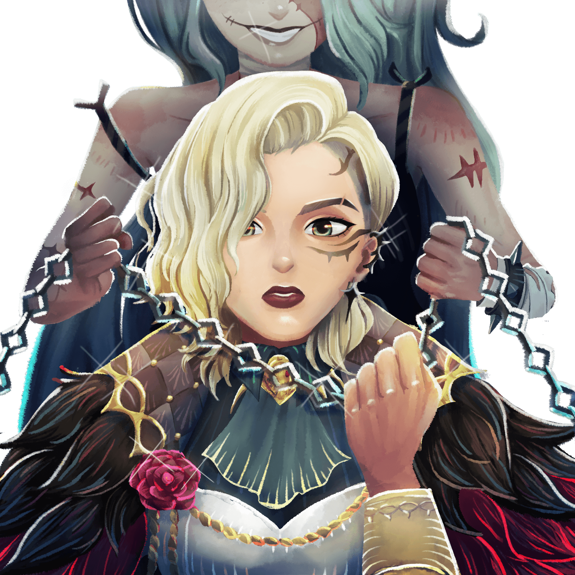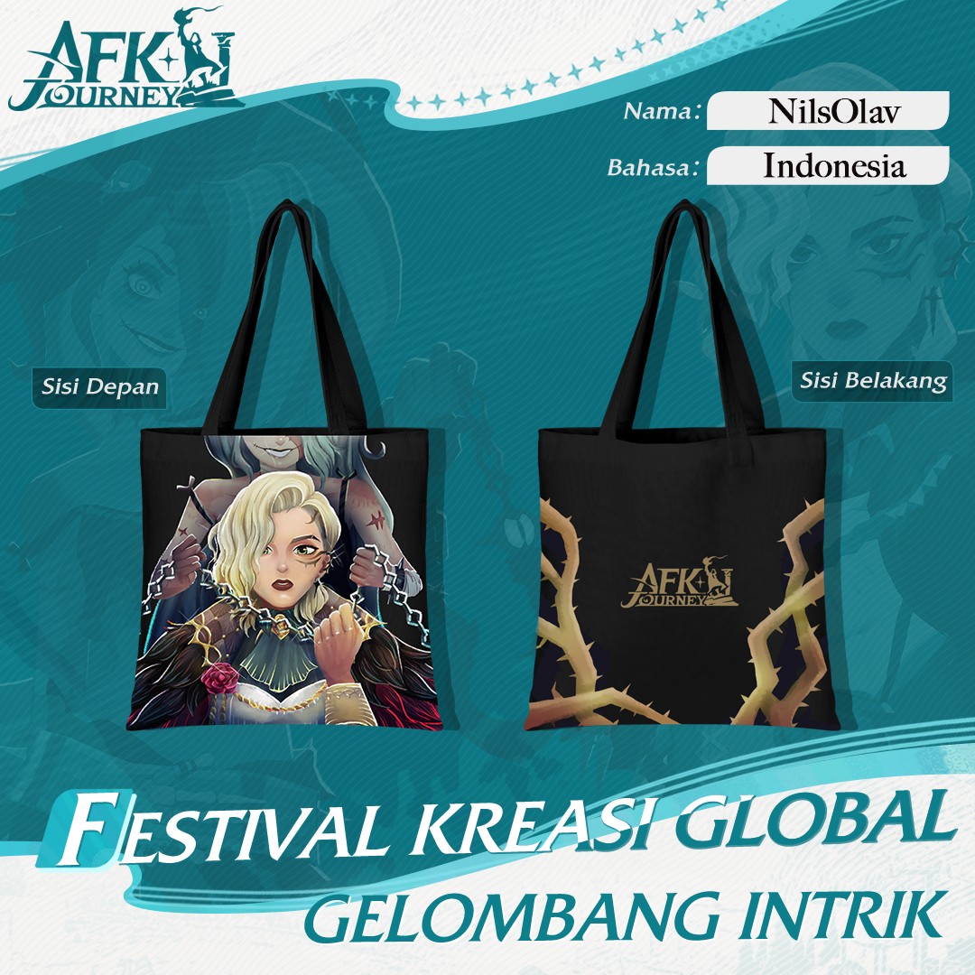 This illustration was created for the AFK Journey Creation Fest Competition and win the Participation Award Prize – Tote Design category, inspired by their new game season, Waves of Intrigue. We couldn’t resist diving into the intense, bittersweet bond between the sister duo, Sonja and Nara. Their powerful (and a little tragic) sibling dynamic pulled us right in—so much so, we just had to capture their story on a tote bag.